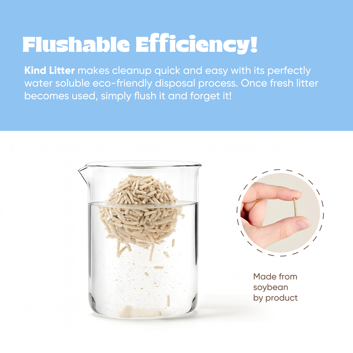 Kind Litter naturally neutralizes odors by absorbing moisture quickly and forming tight clumps that trap smells at the source. No artificial perfumes are used.